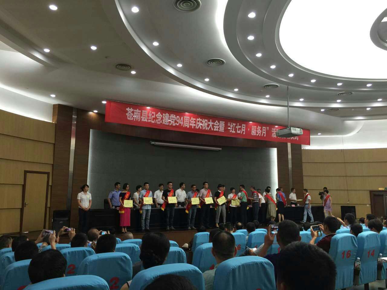 7月1日,在蒼南縣紀(jì)念建黨94周年暨“紅七月服務(wù)月”啟動(dòng)儀式上,天信黨委被中共蒼南縣委表彰為“先進(jìn)基層黨組織”榮譽(yù)稱號(hào)。同時(shí),公司員工黃華同志被表彰為縣優(yōu)秀黨務(wù)工作者。