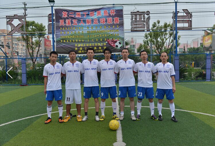天信足球隊成立于2014年,在公司工會的大力支持下,20名隊員們利用業余時間訓練、比賽,提高了戰技水平。其中隊長張維景還作為蒼南足球隊隊員出戰溫超比賽。希望他們再接再厲,在今后的比賽中取得更好的成績!