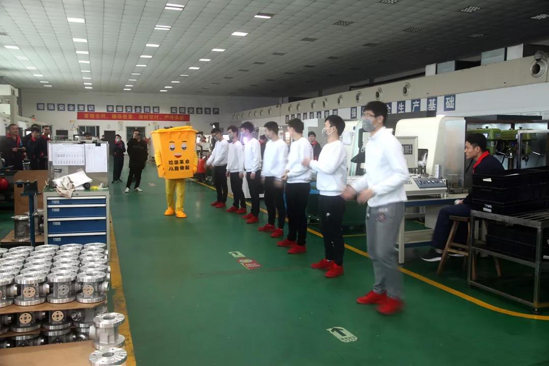 2018年1月11日,一場別開生面的環(huán)保快閃秀活動(dòng)在天信廠區(qū)上演。正當(dāng)員工們在自己的崗位上有條不紊工作時(shí),金工車間空地上突然響起了時(shí)尚動(dòng)感的曳步舞音樂,只見八位帶著灰色口罩、穿著統(tǒng)一衣服的天信文藝俱樂部成員從工作崗位上來到空地中間,配合著音樂激情熱舞,炫動(dòng)全場。中間還有一位萌萌的、扮演垃圾桶的黨員志愿者,向圍觀的員工作垃圾分類的宣傳。