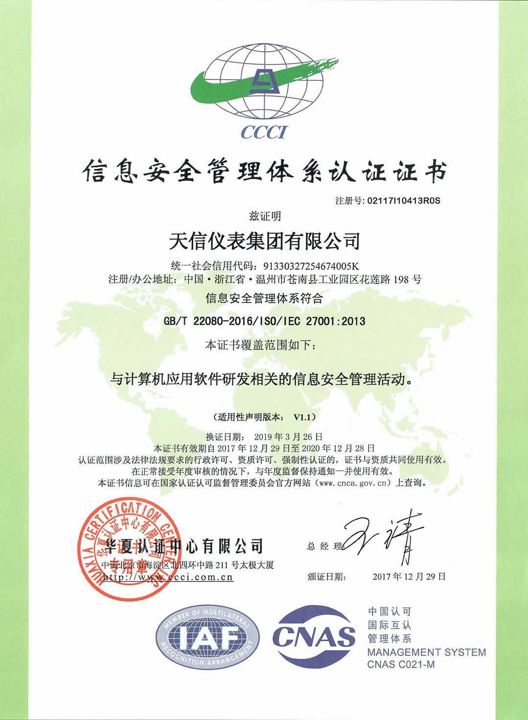 • Information Safety Management System Certificate